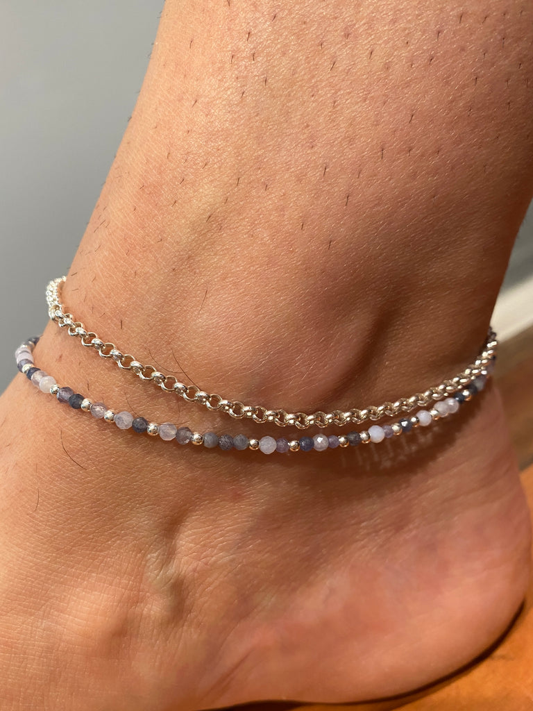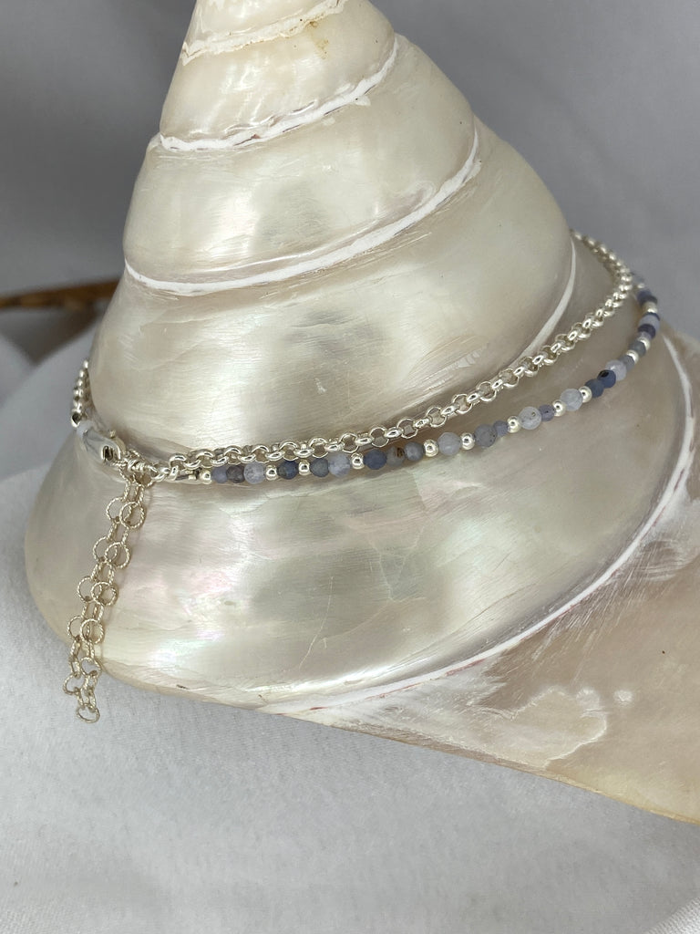 Beautiful Anklet featuring Sapphire, Tanzanite & Blue Lace Agate and a sterling silver chain creating a double strand anklet.