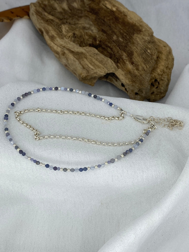 Blue Lace Agate, Tanzanite & Sapphire Anklet