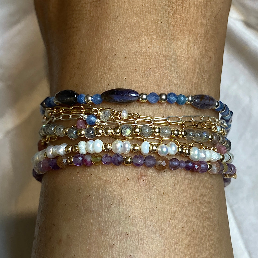 - Cool tones, Kyanite & Iolite with pops of Sterling Silver
