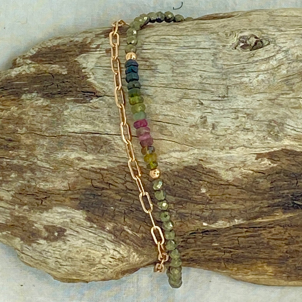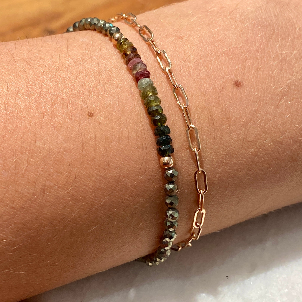 Pyrite & Tourmaline 14K Rose Gold Filled Anklet