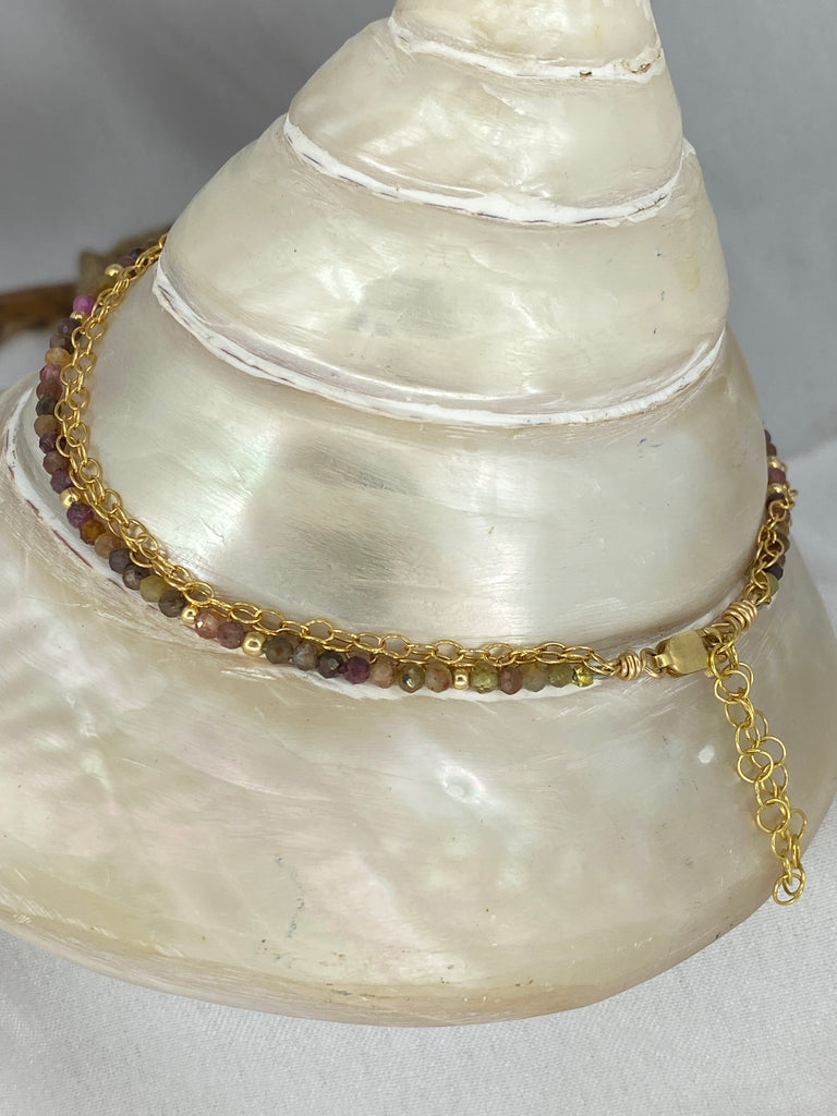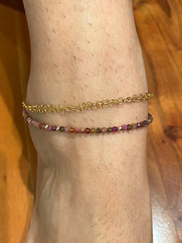 Sapphire anklet made using 14kgf & a range of different colour Sapphire gemstones.