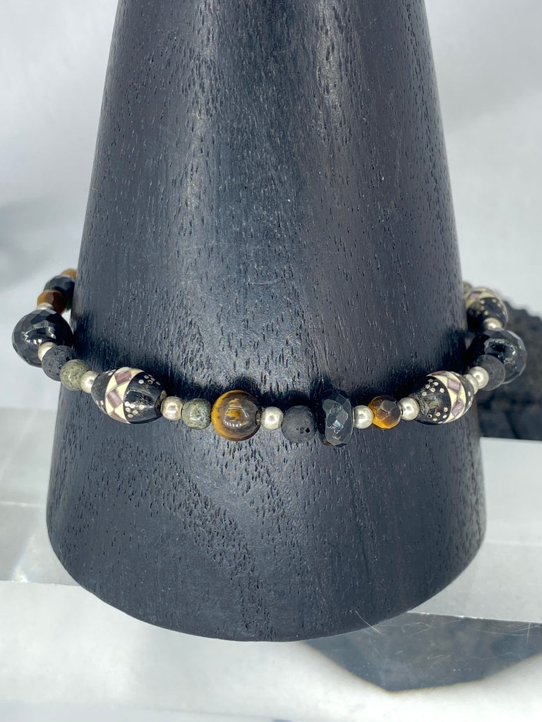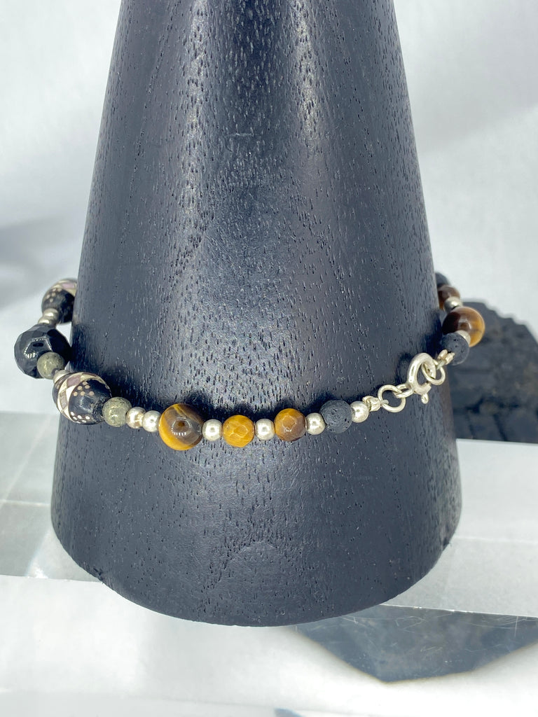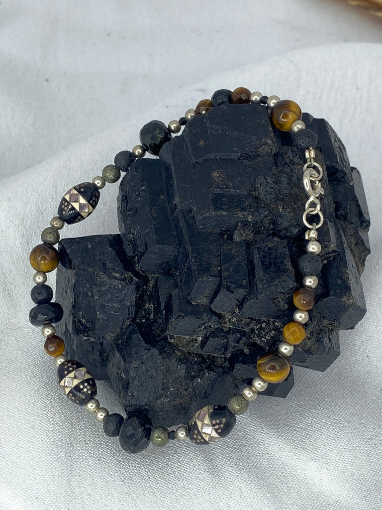 Pyrite, Tigers Eye, Lava & Tourmaline Bracelet