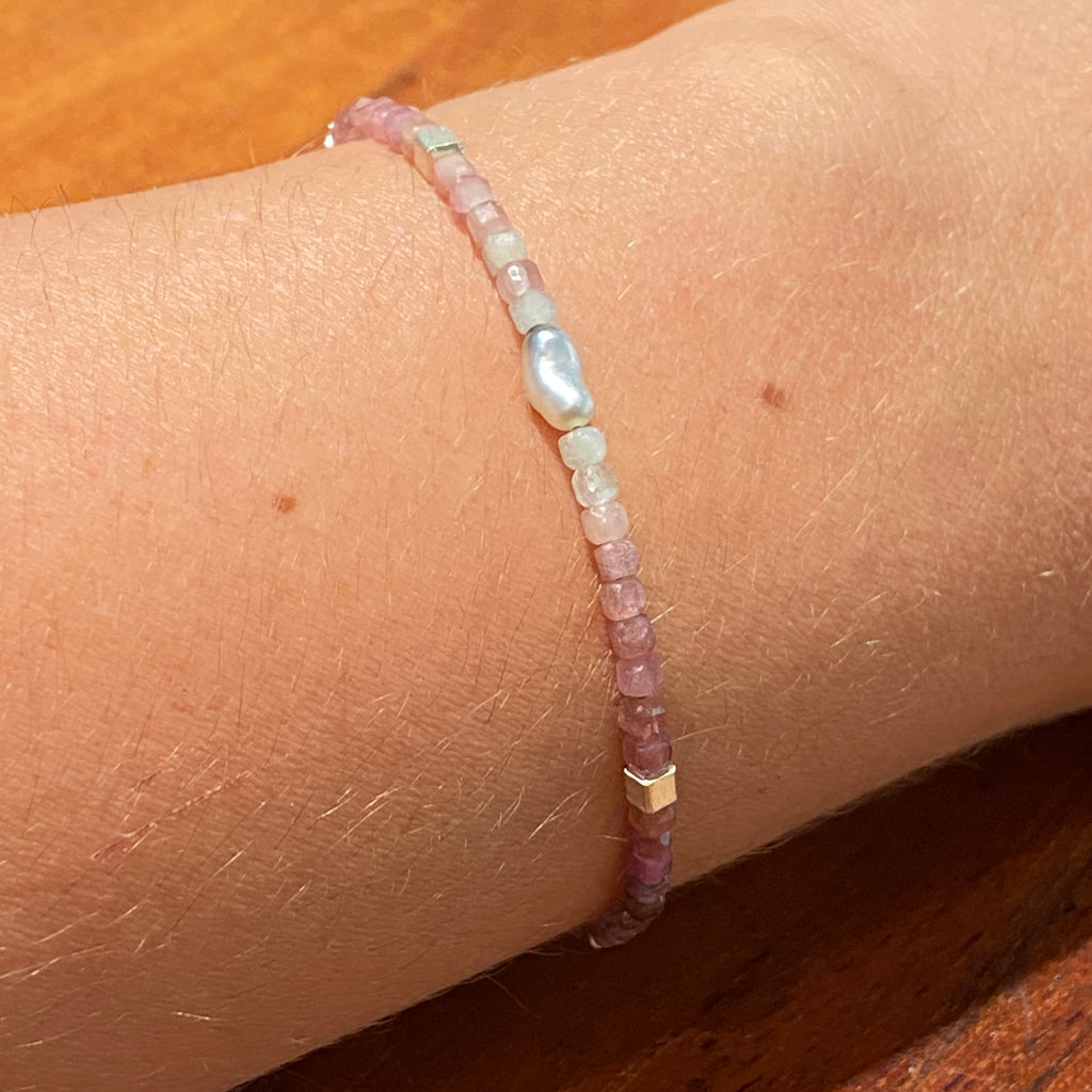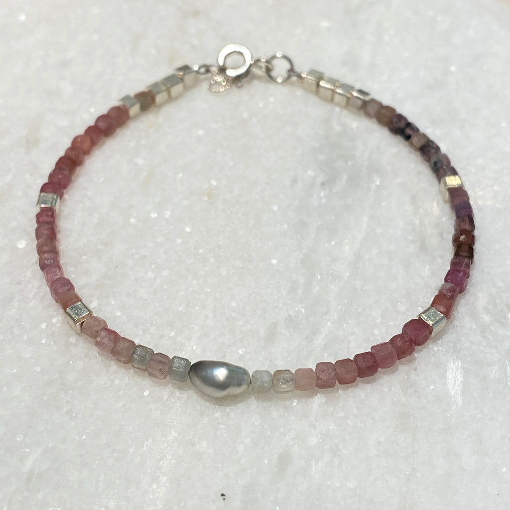 South Sea Keshi Pearl & Tourmaline Sterling Silver Gemstone Bracelet