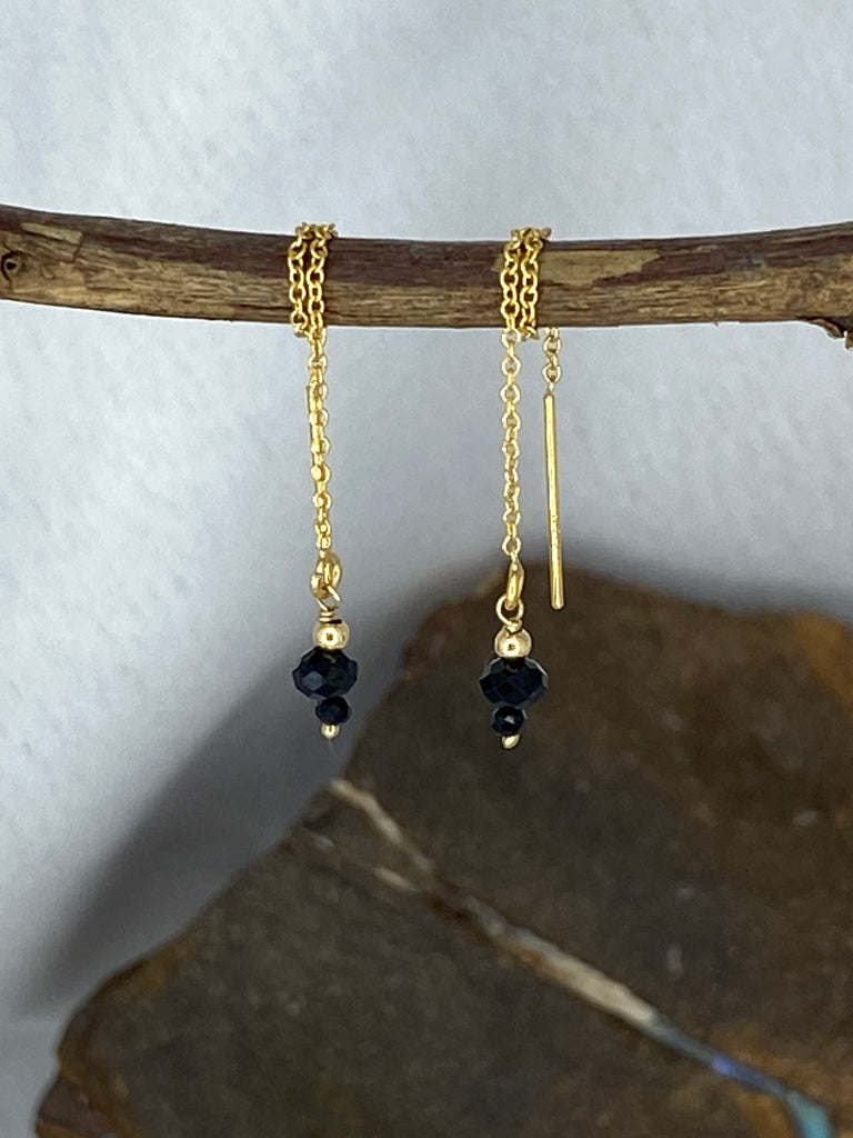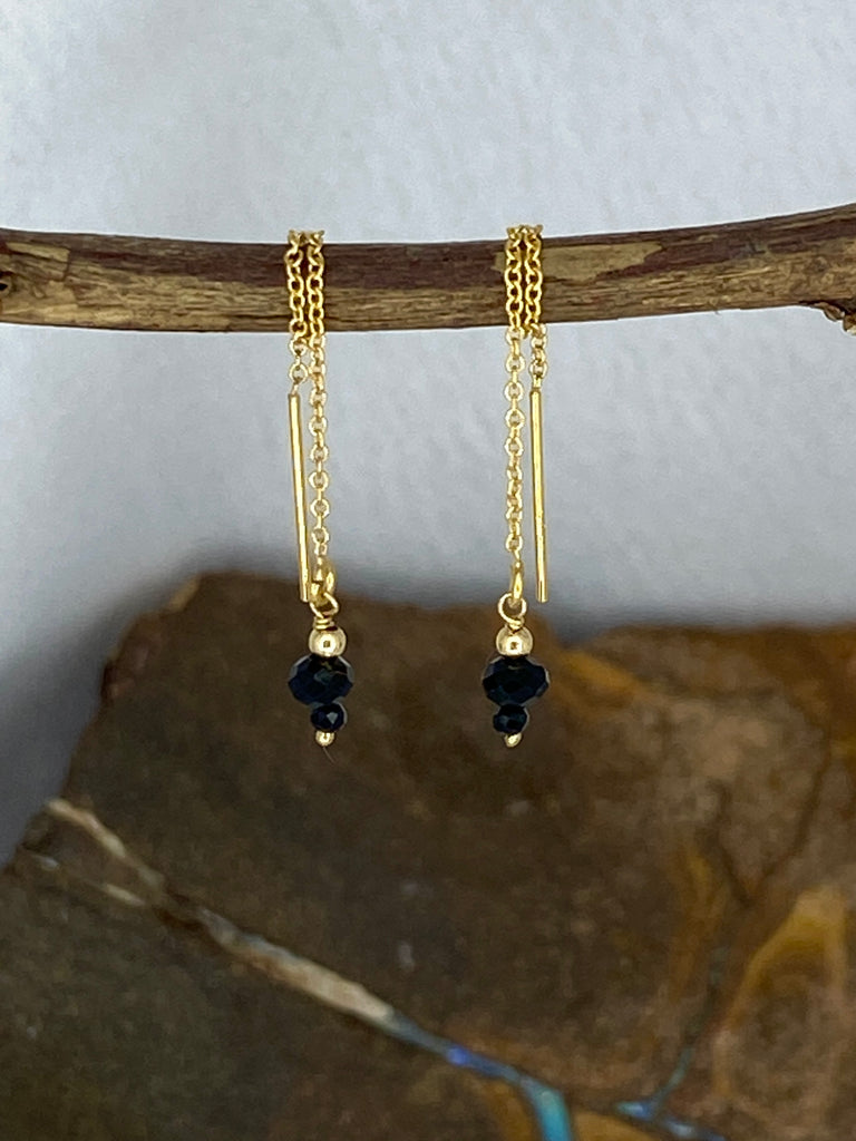Elegant and Stylish thread earrings to suit any event, party or for everyday wear, featuring 2 Black Spinel gemstones hanging from a 14kgf chain.