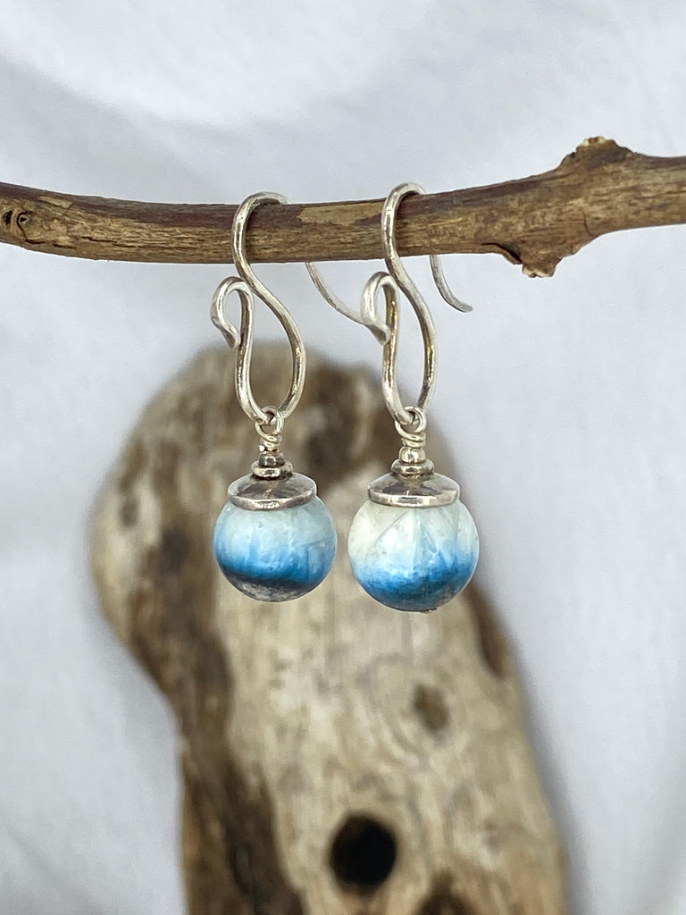 Handmade earrings, using 925 sterling silver & Blue Ice gemstones hanging from an Indivi hook.