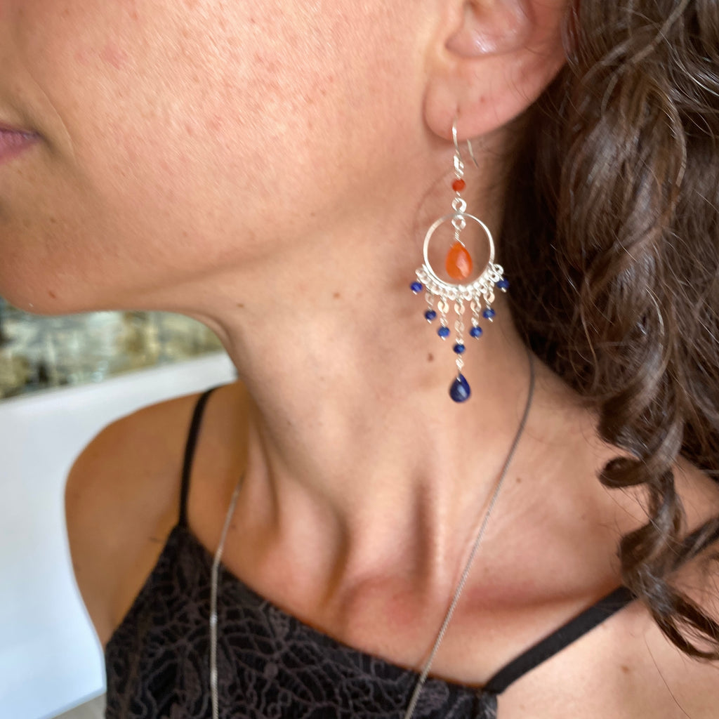 Carnelian & Lapis Lazuli Earrings Sterling Silver