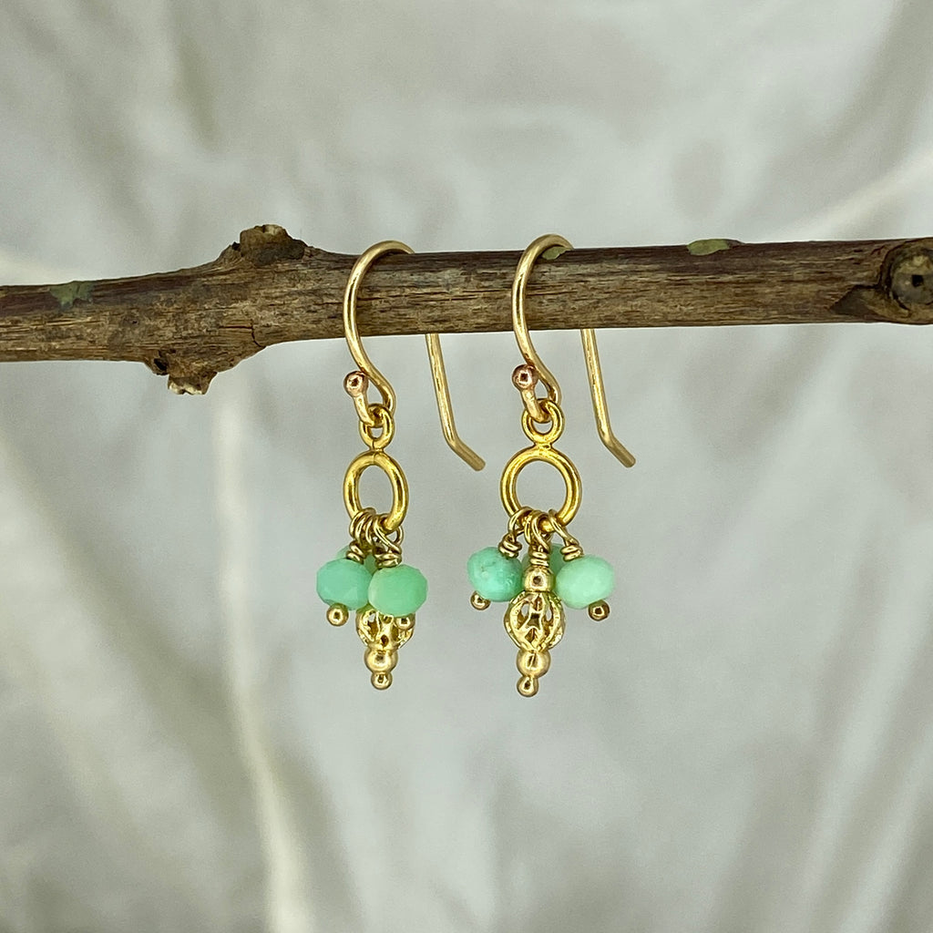 These unique Chrysoprase earrings have been handcrafted in store using 14kgf.
