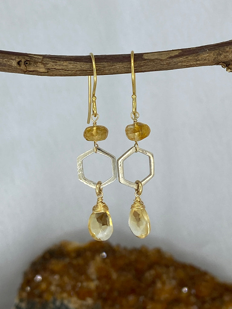Hand crafted earrings featuring Citrine all throughout & a mixture of 14K Gold Filled & 925 sterling silver.