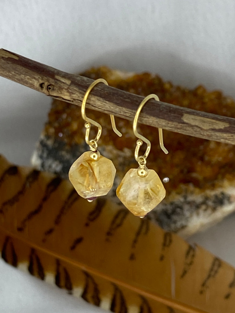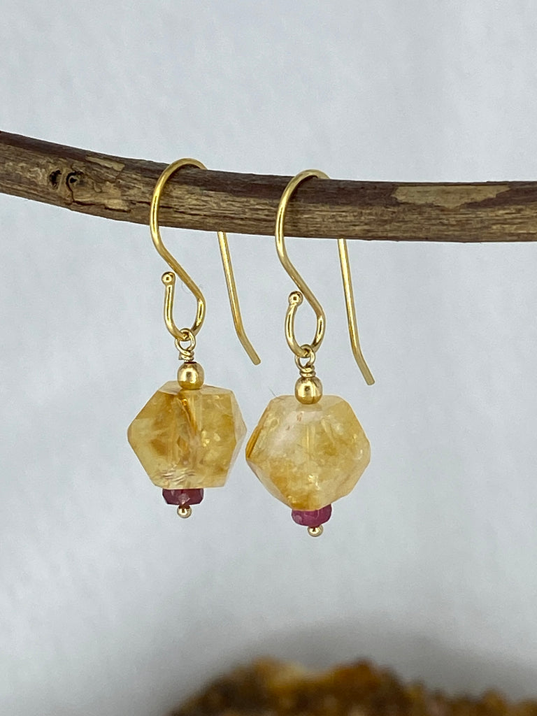 Hexagonal Citrine & Tourmaline earrings made with 14K Gold Filled.
