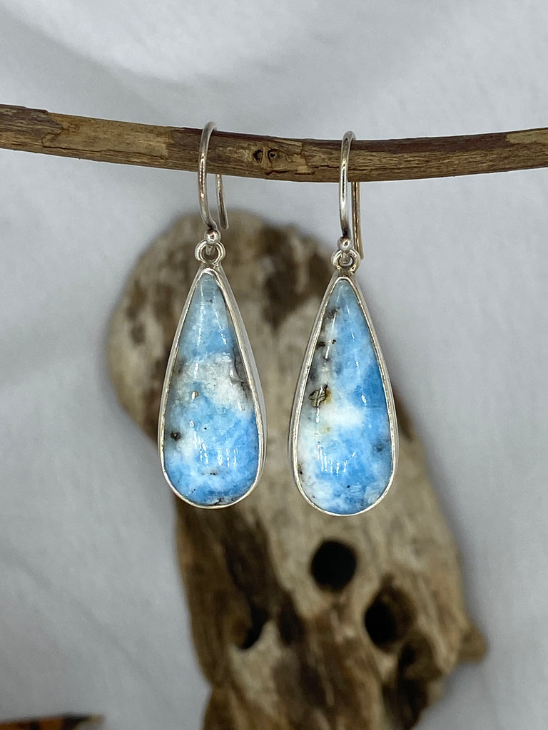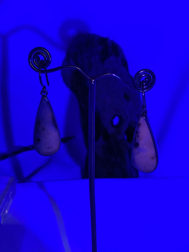 These stunning earrings are set in 925 sterling silver and have a teardrop shape of Fluorescent Hackmanite - this stone reacts to UV and changes colour under UV light.