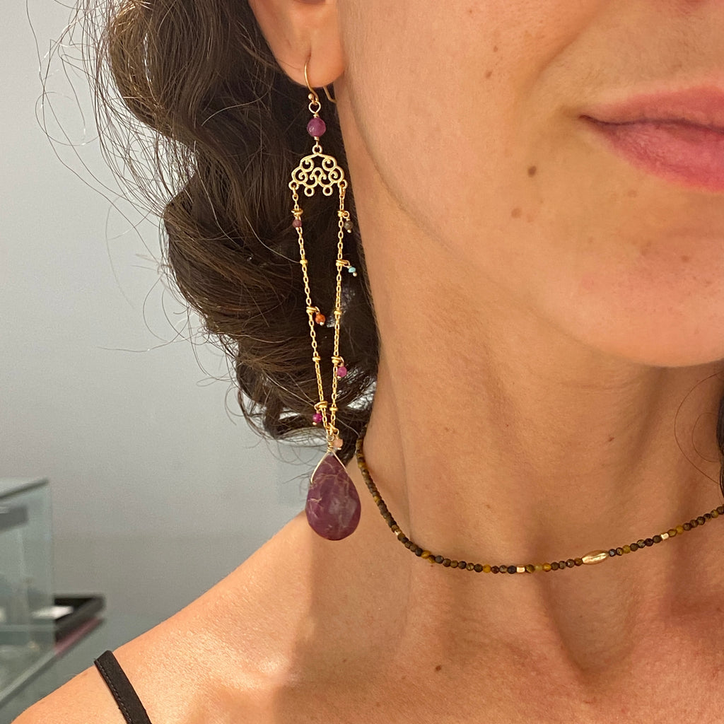 - Bottom faceted teardrop cut Rubies measure roughly 13.5mm W x 20mm H