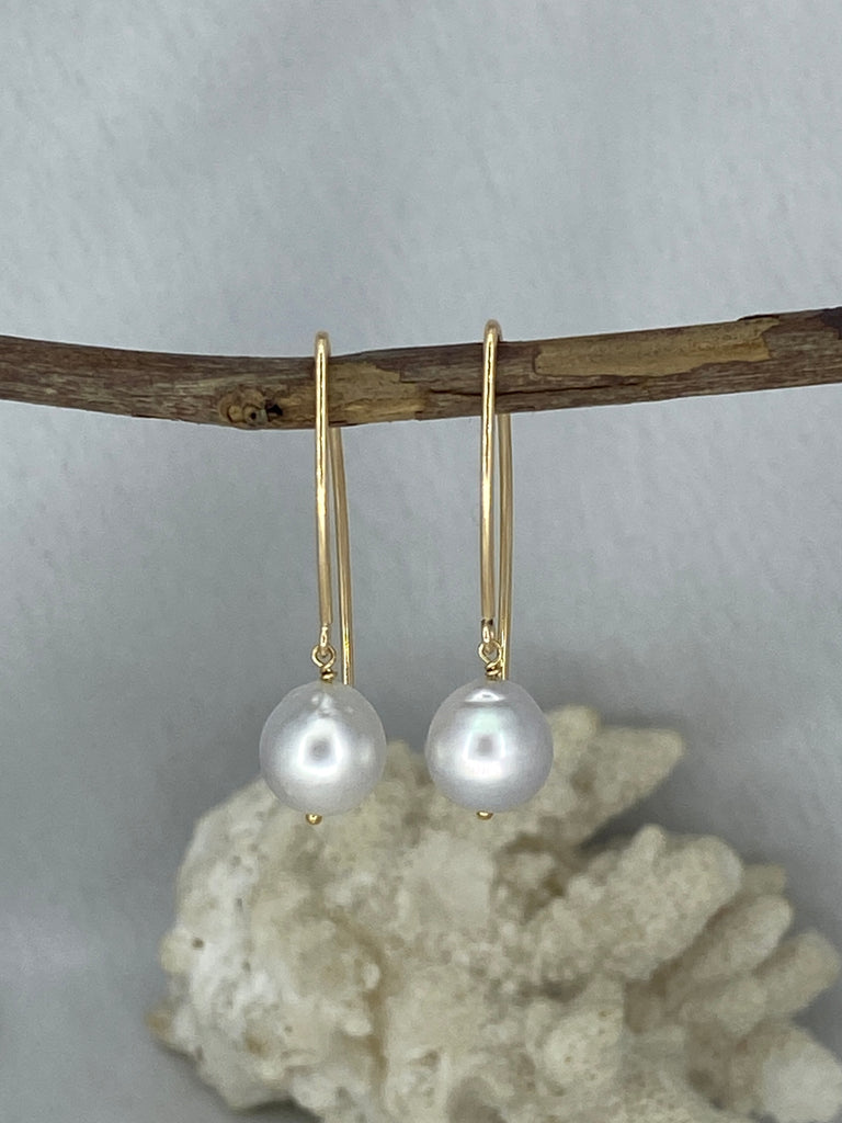 Gorgeous & elegant earrings featuring South Sea Pearls hanging from a 14k Gold Filed shepherd hook.