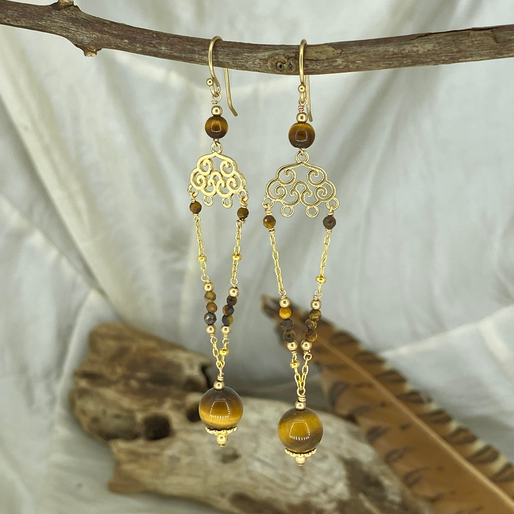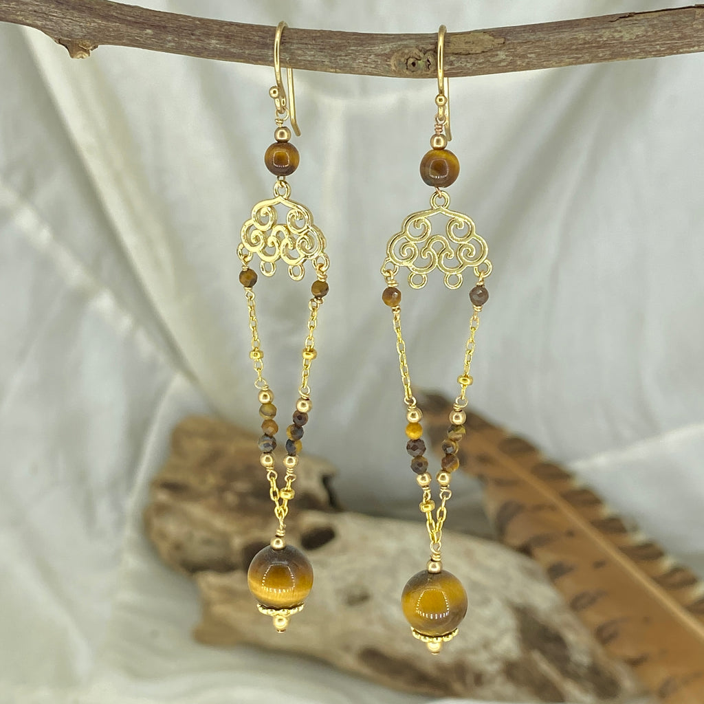 Beautiful Tigers Eye Earrings handmade in store using 14kgf & high quality gemstones.