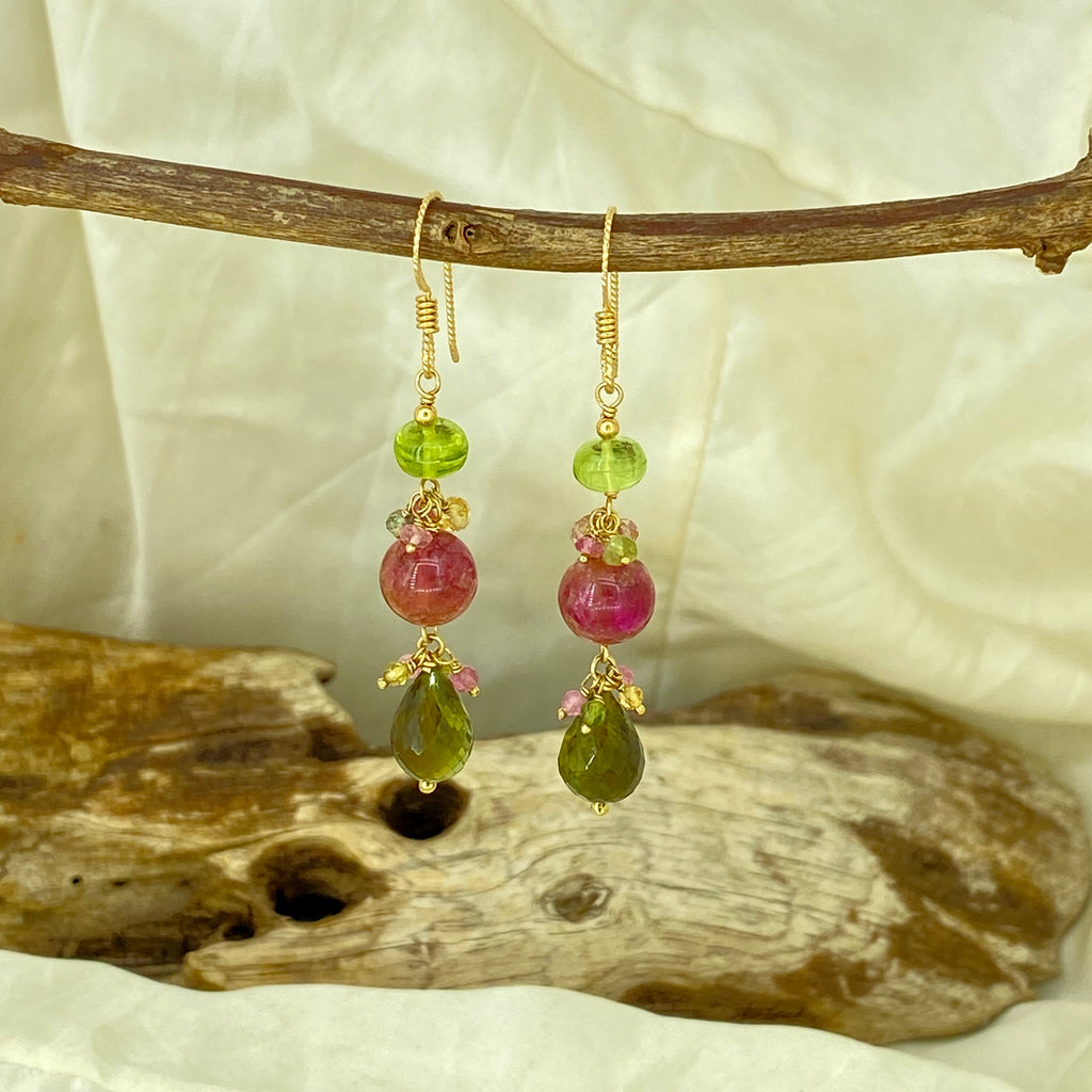 Tourmaline & Peridot Earrings 14K Gold Filled