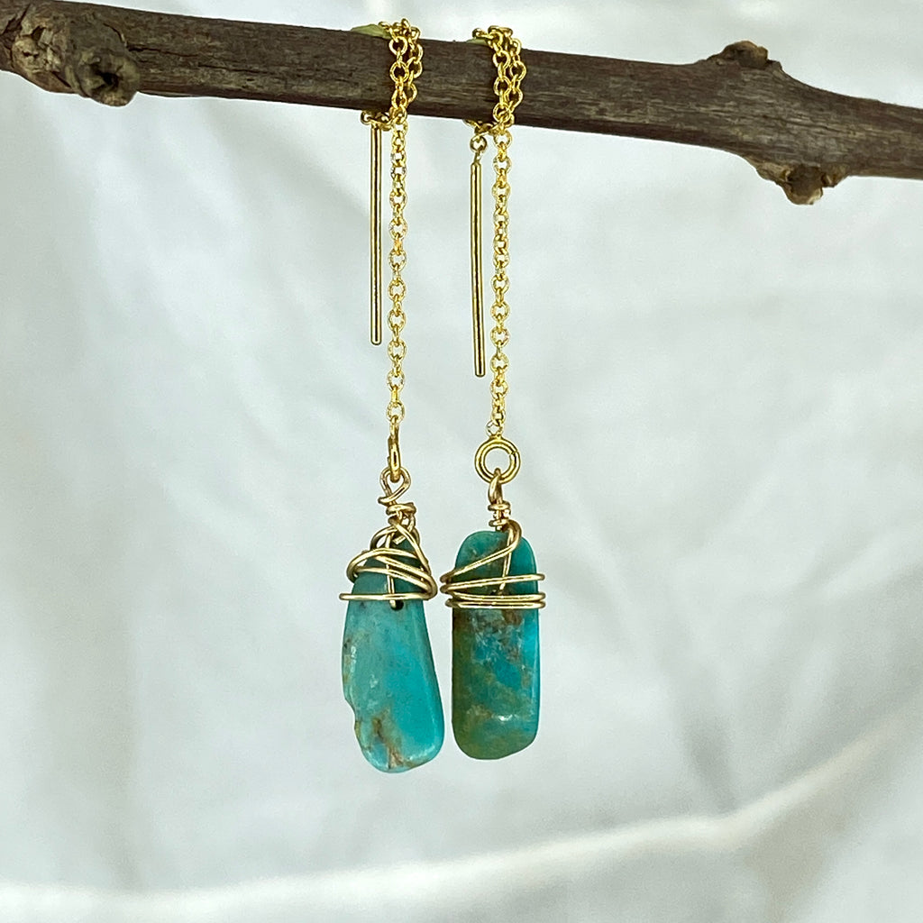 Beautiful thread earrings made with 14kgf & Turquoise.
