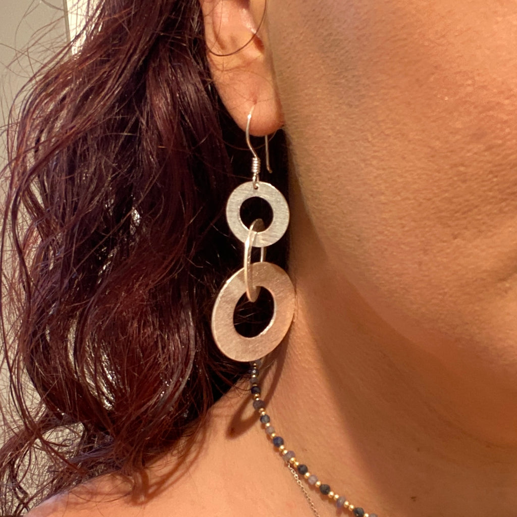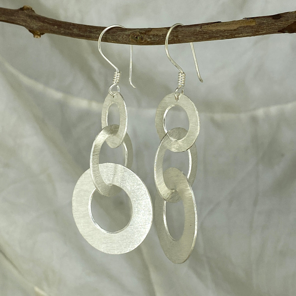 Stunning & unique Hill-tribe silver earrings featuring 3 silver hoops connected to each other.