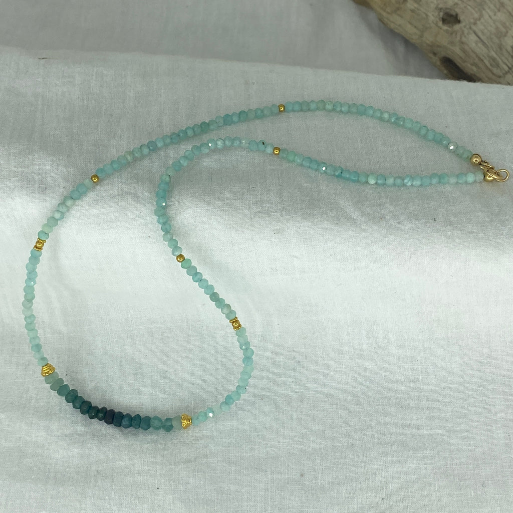 Amazonite & Grandidierite 18ct Gold Necklace