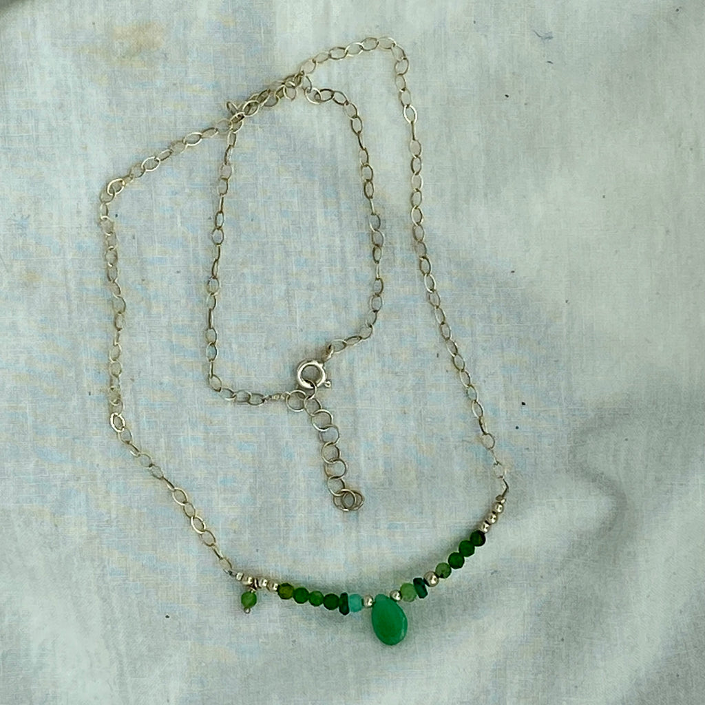 Hand made necklace with Chrome Diopside & Chrysoprase on a 925 sterling silver chain.