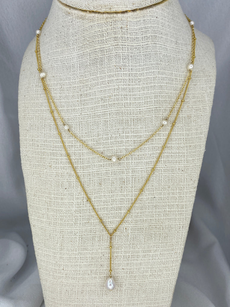 Beautiful handmade necklace using 14kgf chain and Freshwater Pearl throughout.