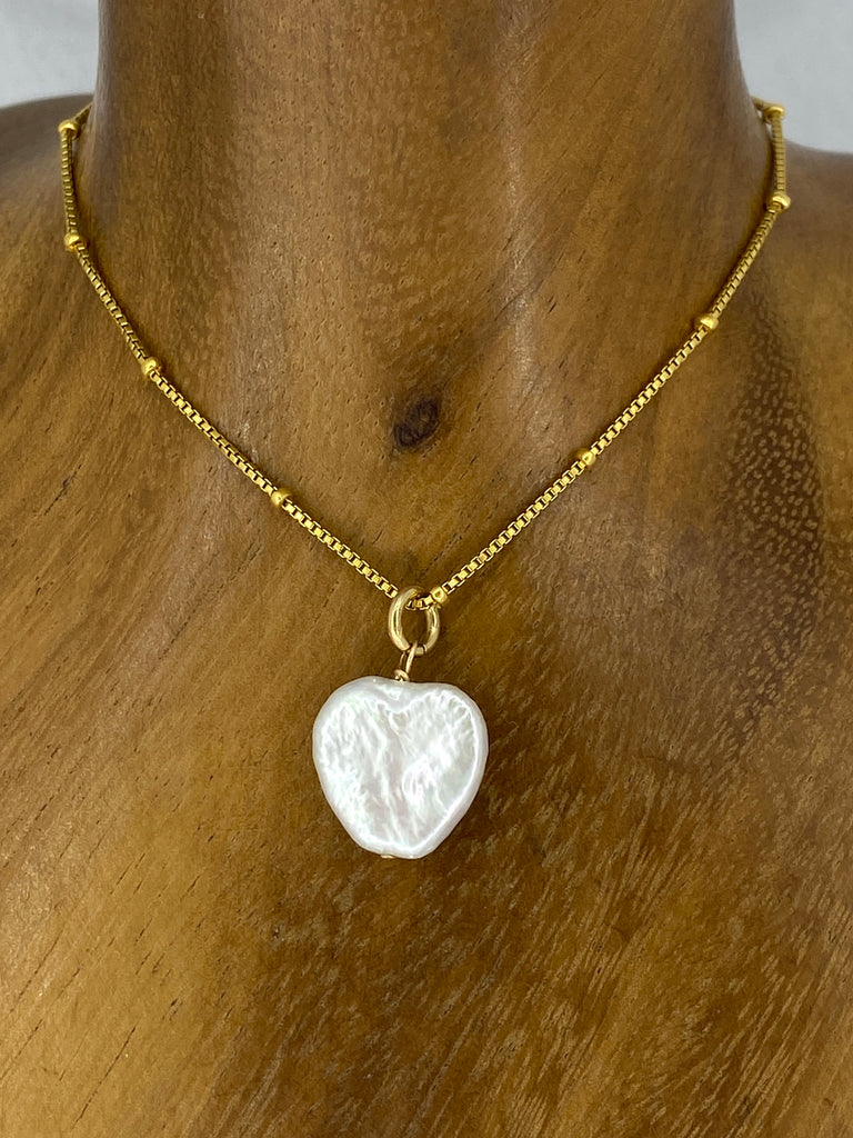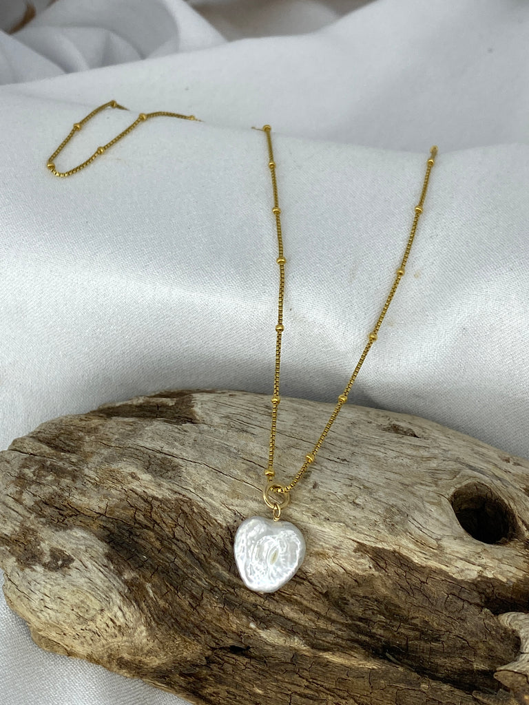 Freshwater Pearl in a heart shape on a sterling silver chain.