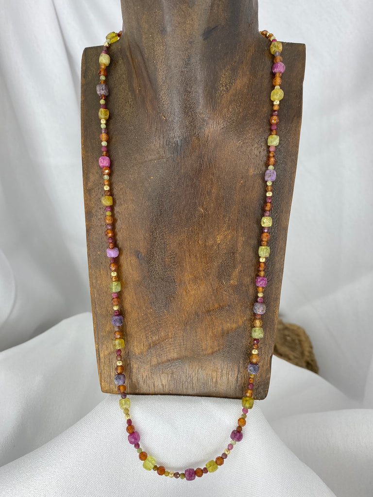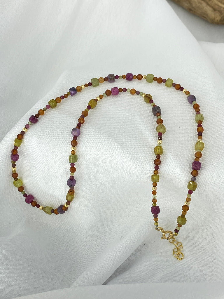Stunning mix of Grossular Garnet, Hessonite Garnet & Sapphire to create this colourful masterpiece necklace to adorn you.