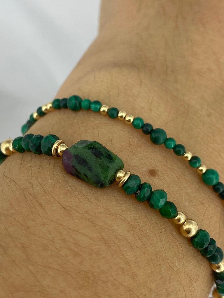 Malachite, Ruby Zoisite Convertible Bracelet/Necklace