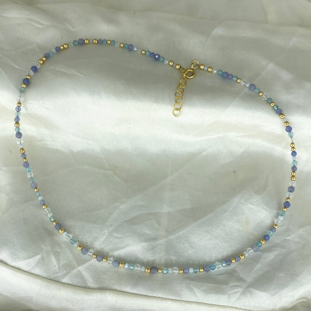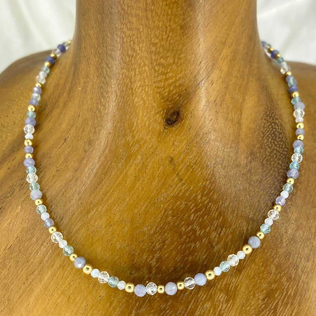 Gemstone Necklace featuring a mix of Apatite, Tanzanite, White Topaz & Blue Lace Agate.