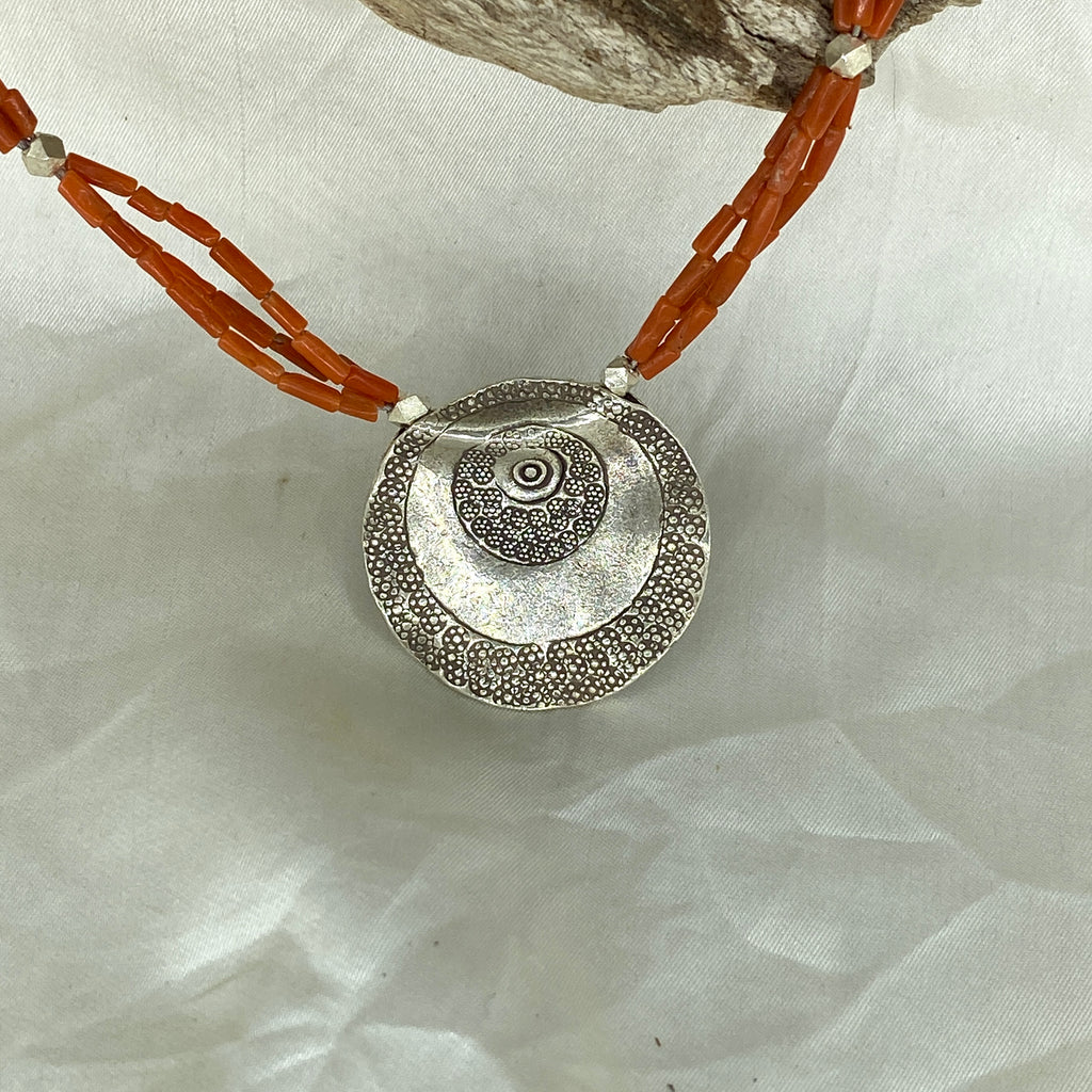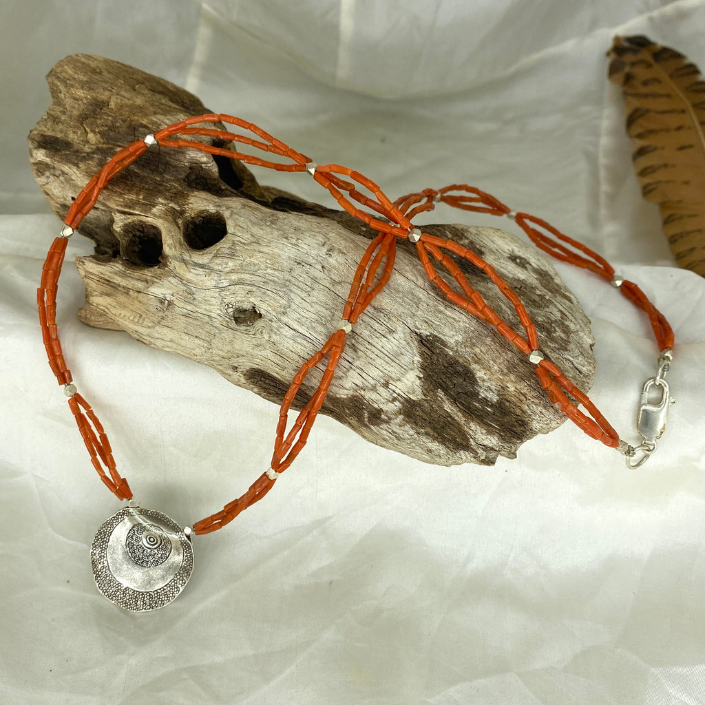 Stunning multi strand Red Coral with Sterling silver decorative main piece.