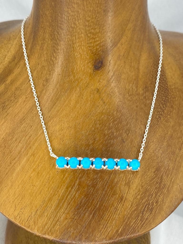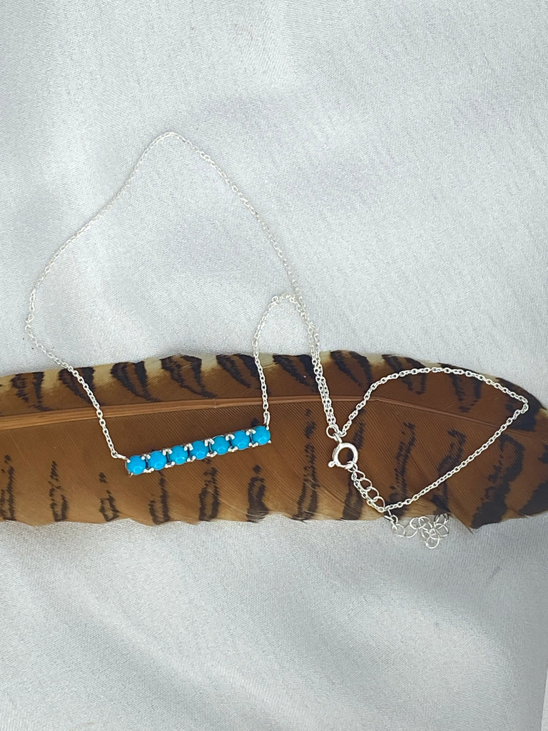 Bar necklace with natural Arizonian Turquoise gemstones set in 925 sterling silver on a silver chain.