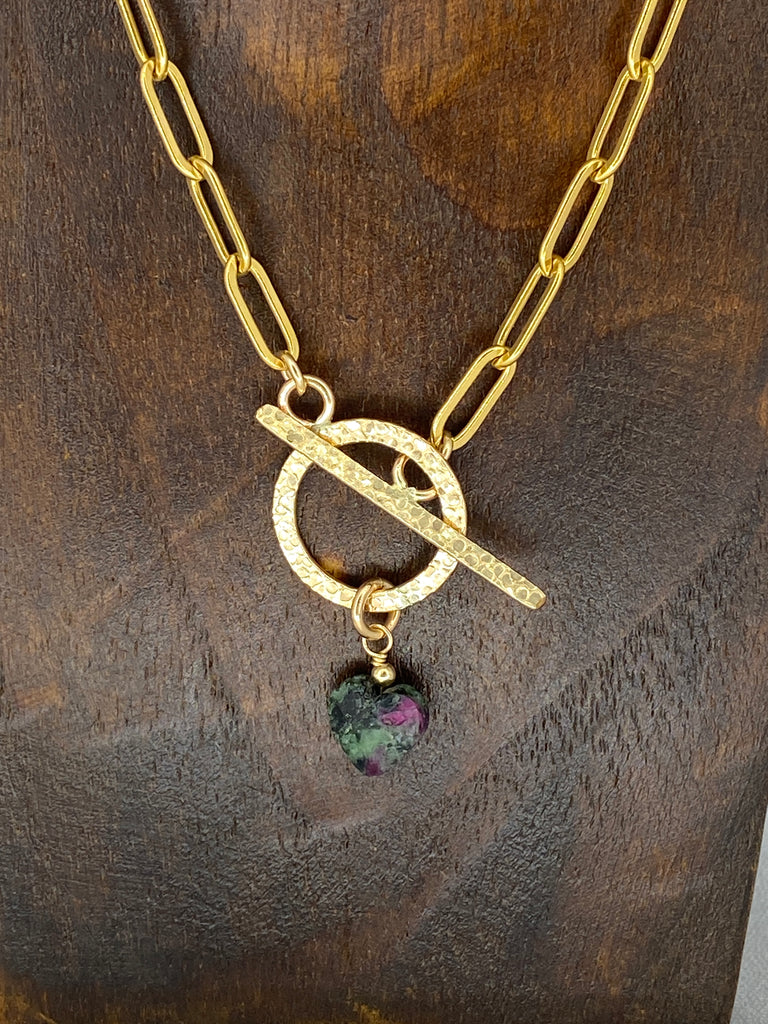 Necklace or Bracelet convertible with Ruby Zoisite Heart