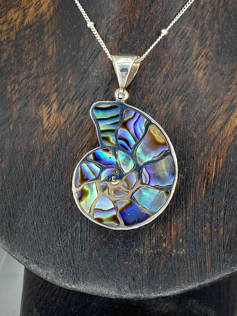 Beautiful eye catching Paua shell with Ammolite Inlay.