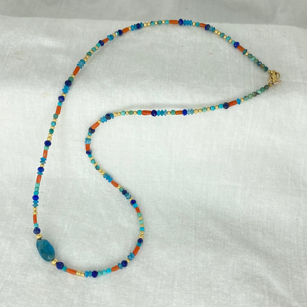 Red Coral, Lapis Lazuli, Apatite & Turquoise Necklace