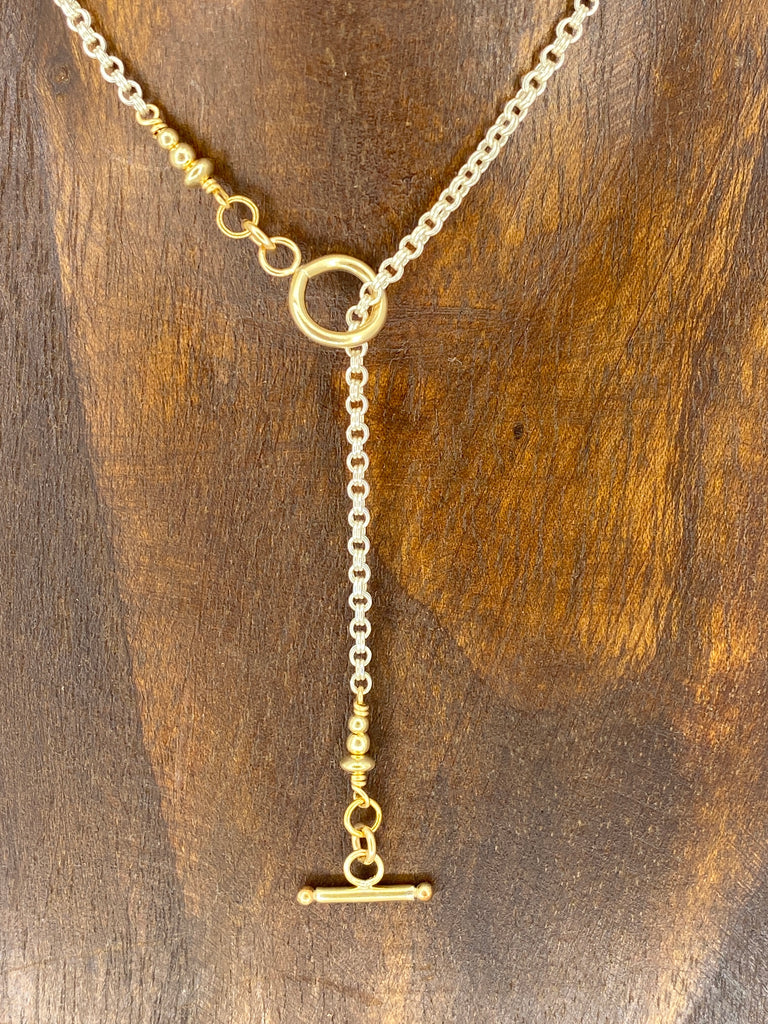 Necklace chain with 925 sterling chain and 14kgf toggle and t-bar to wear in a range of different ways.