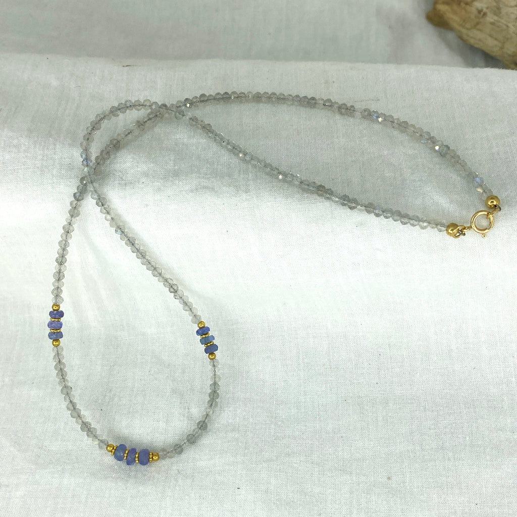 18ct Gold necklace featuring Tanzanite & Labradorite.