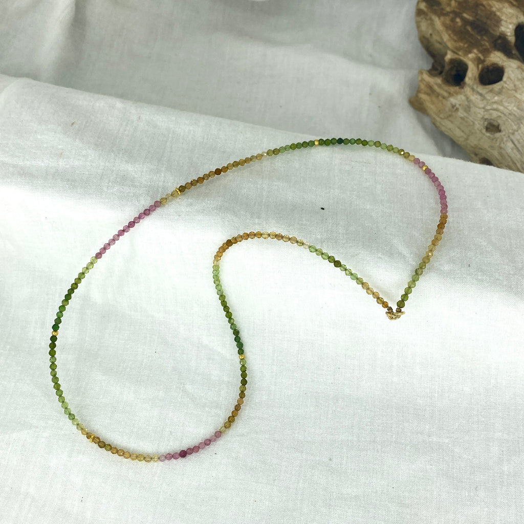 Tourmaline mixed colour gemstone necklace using 18ct gold.