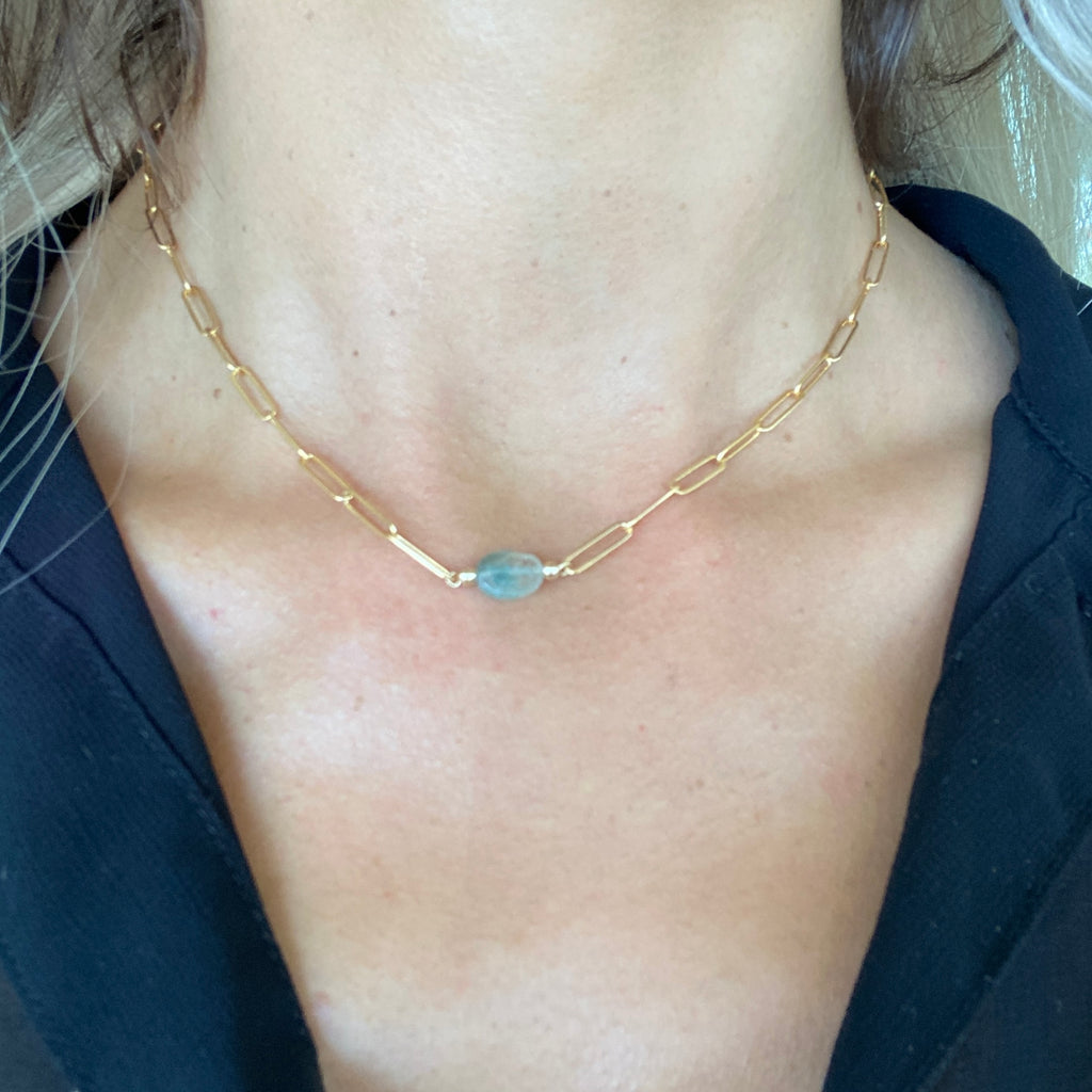 Tourmaline Paperclip Chain Necklace 14k Gold Filled