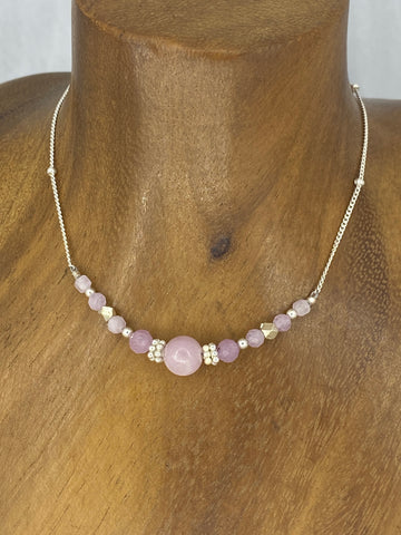 Necklace expertly made with a variety of Kunzite gemstones in the centre and sterling silver.