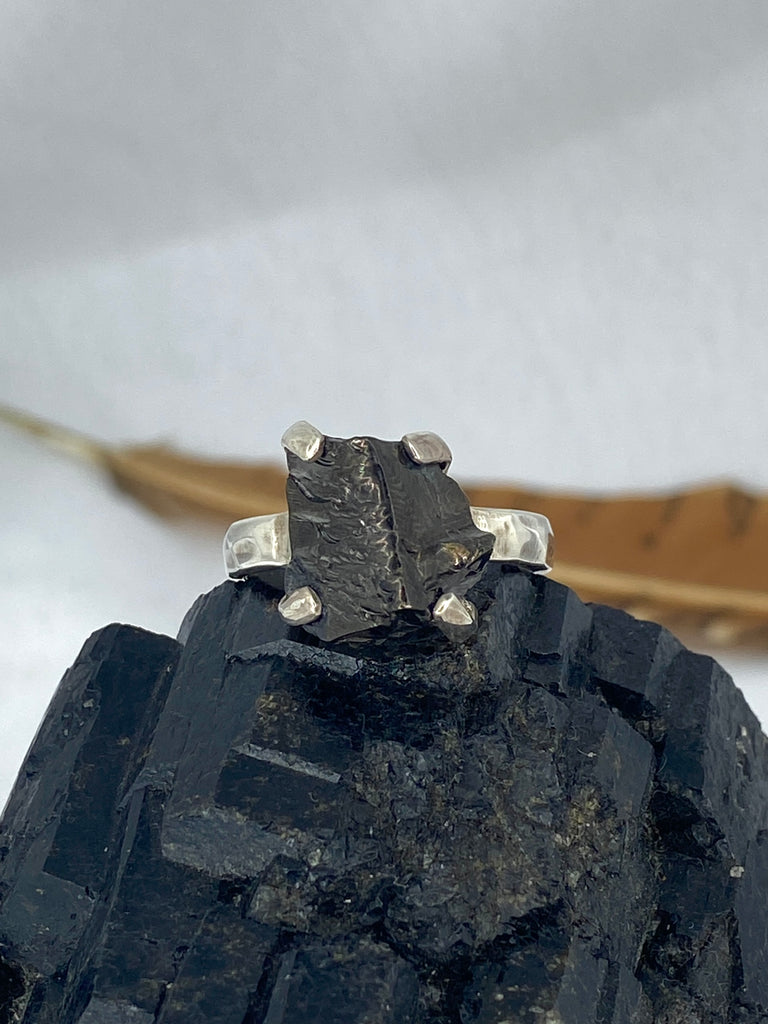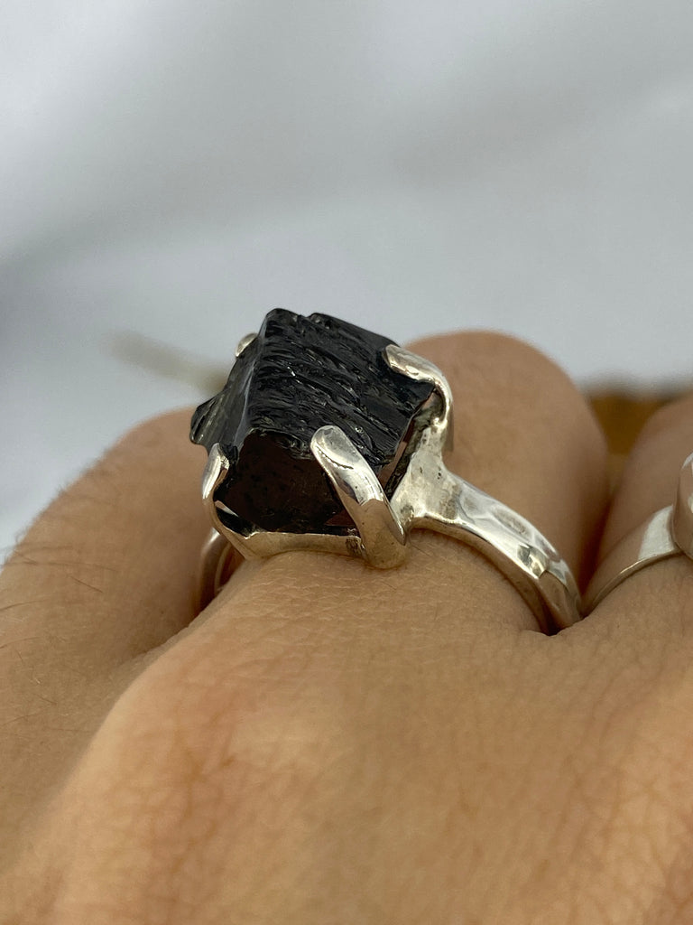 This stunning ring features a raw piece of Elite Shungite set in a claw grip using 925 sterling silver.