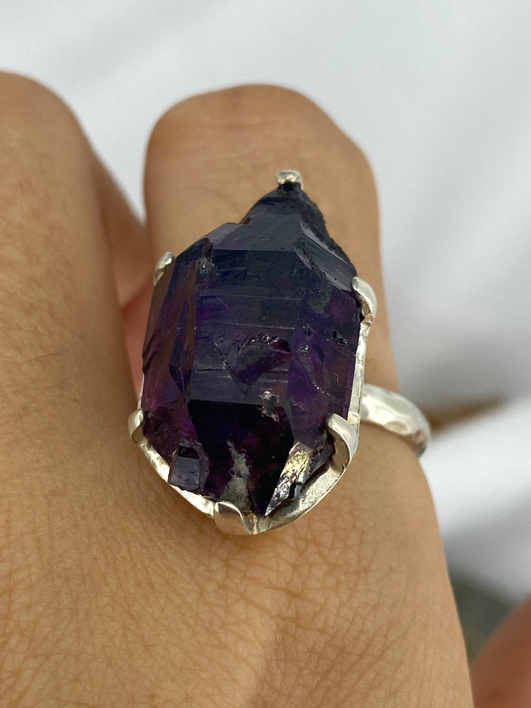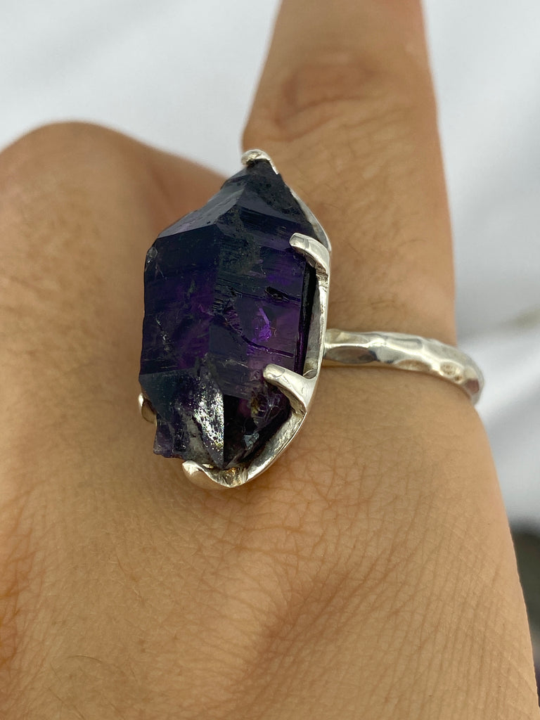 Beautiful statement ring with Shangaan Amethyst set in a claw grip using 925 sterling silver.