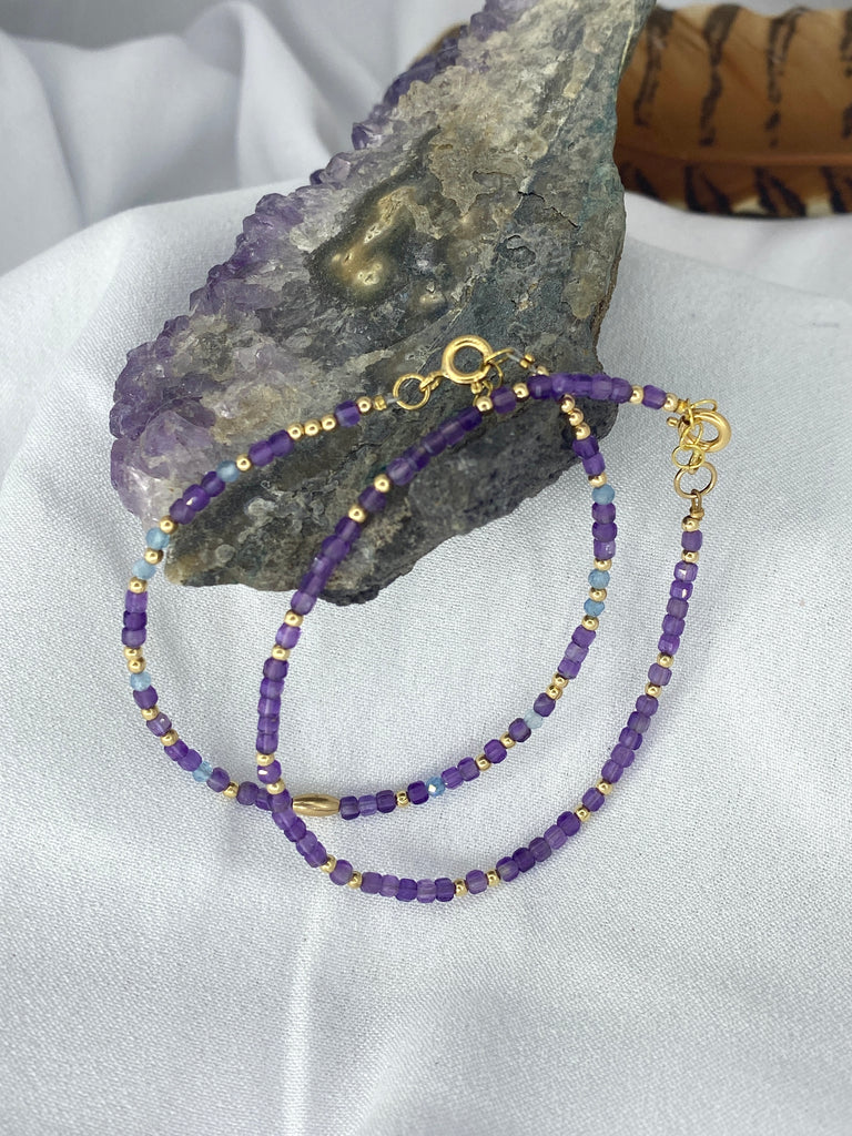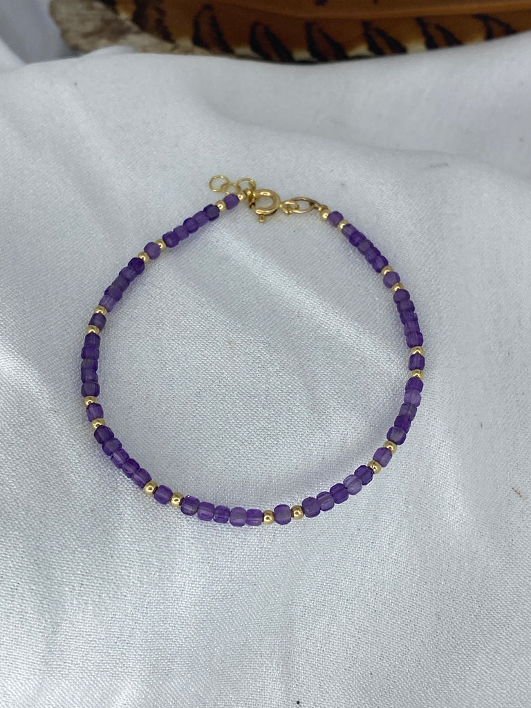 Bracelet featuring Amethyst, handmade using 14kgf.