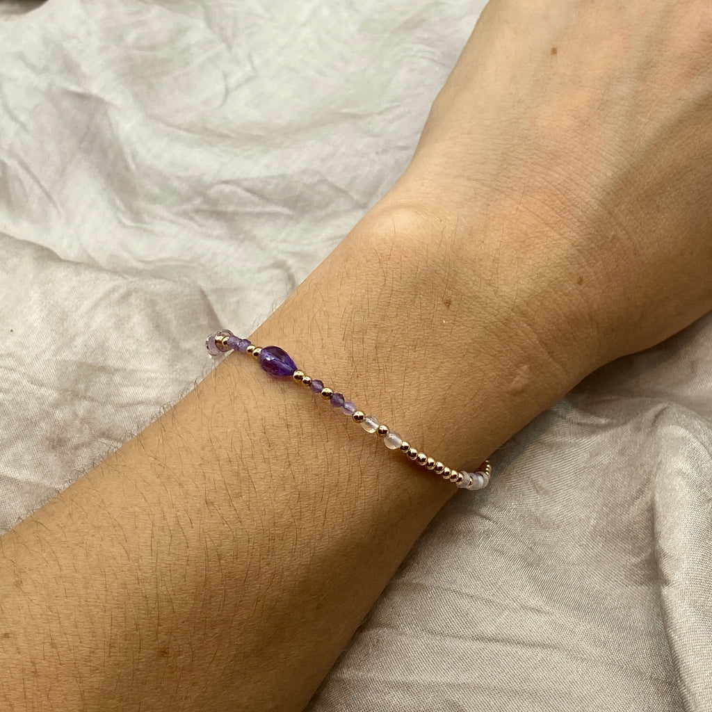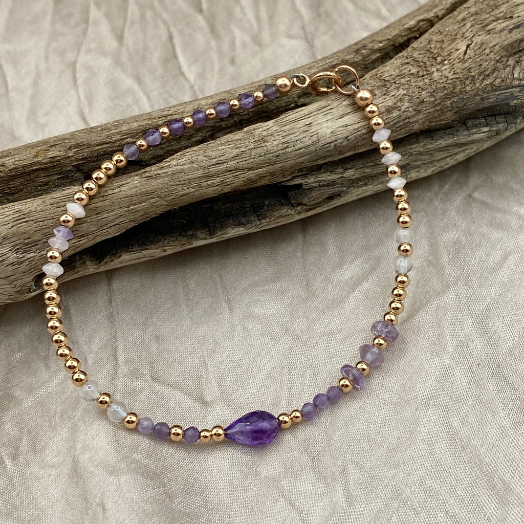 Amethyst, Kunzite & Rose Quartz Bracelet 14K Rose Gold Filled