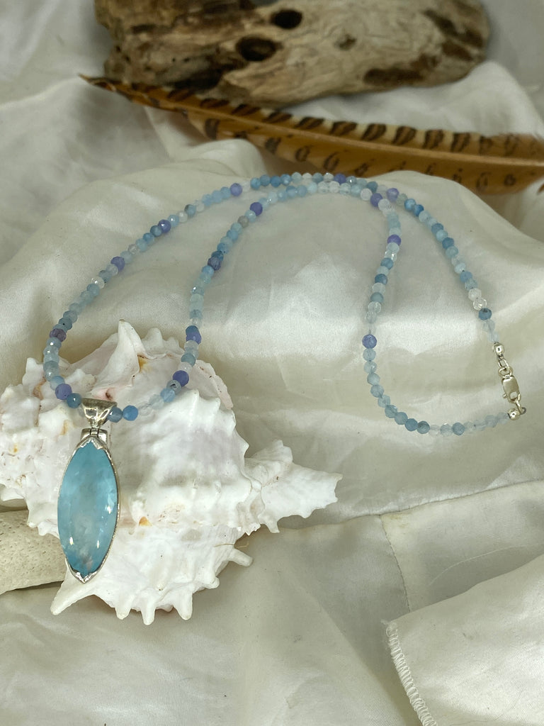 Marquise shape high quality Aquamarine pendant with facet beautifully set in 925 sterling silver.