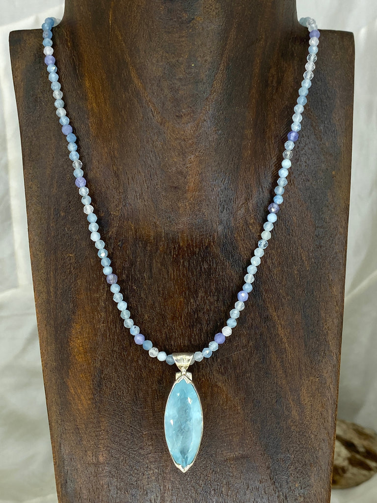 Can be sold together with beaded gemstone necklace containing Aquamarine & Tanzanite upon request.